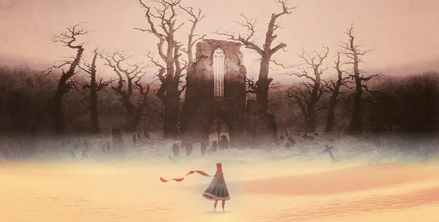 عکس نقاشی سبک رمانتیسم از بناهای قدیمی پوشیده از برف