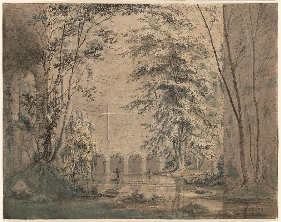 عکس نقاشی قدیمی و یک رنگ در سبک رمانتیسم