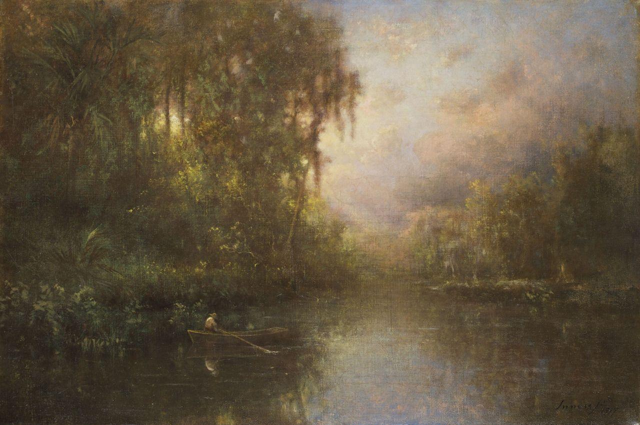 عکس نقاشی سبک رمانتیسم از مردی برهنه در قایق درون رودخانه