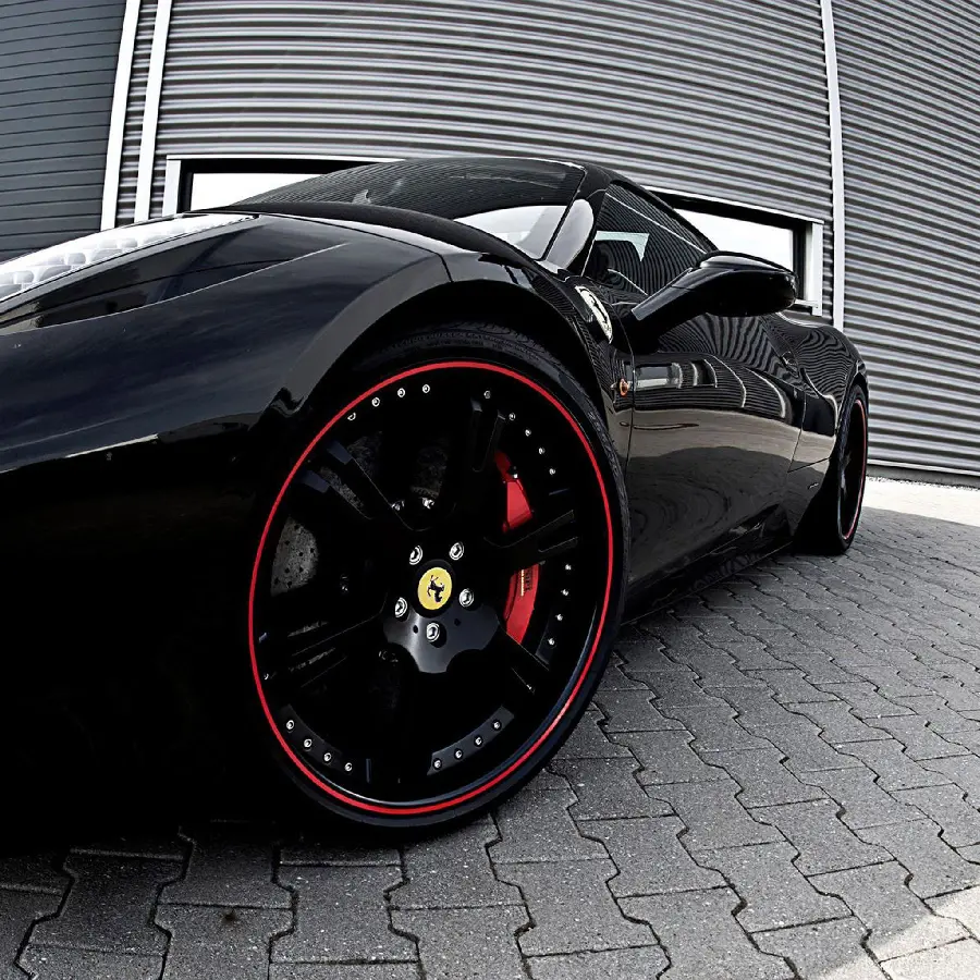 عکس خودروی فراری مشکی رنگ با رینگ مخصوص از پهلو