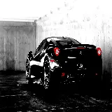 تصویر فراری مشکی رنگ بسیار معروف با تم سیاه سفید