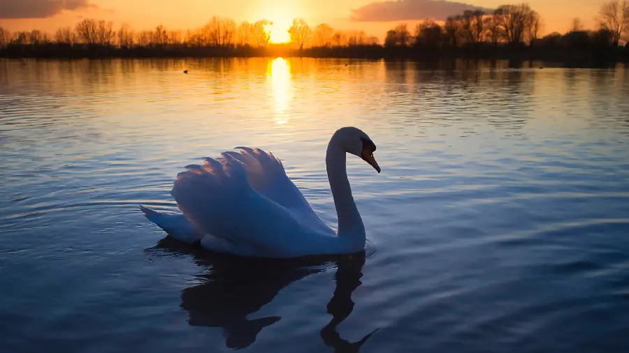 والپیپر جذاب و رویایی از قو سپید رنگ در غروب آفتاب