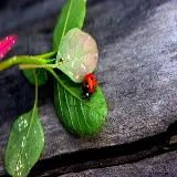 تصویر زمینه دلربا از کفشدوزک گوگولی روی برگ های ریحان