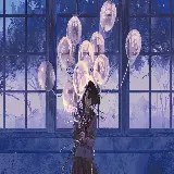 نقاشی بنفش دختر انیمه ای ناز غمگین با بادکنک سفید شفاف برای الگو