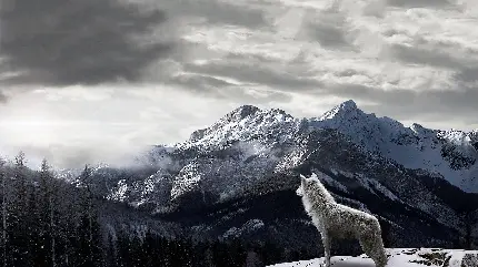 والپیپر از گرگ سفید با منظره فوق العاده زیبا