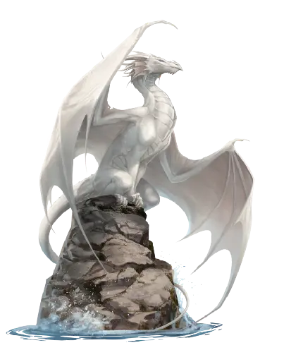 دانلود عکس ژدهای سفید افسانهای بالدار نشسته روی صخره