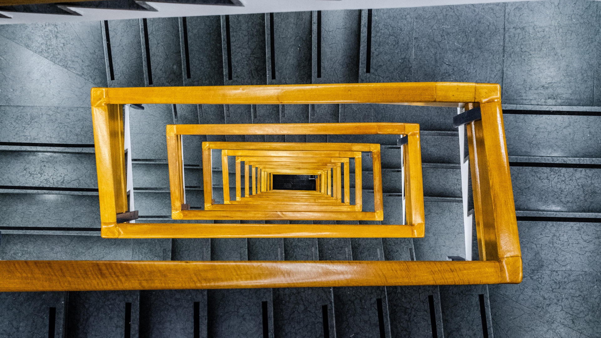 پس زمینه شاهکار از راه پله پیچ در پیچ از بالا با کیفیت 8K