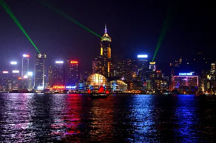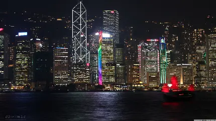 تصویر خیره کننده مناظر شبانه هنگ کنگ با کیفیت بالا