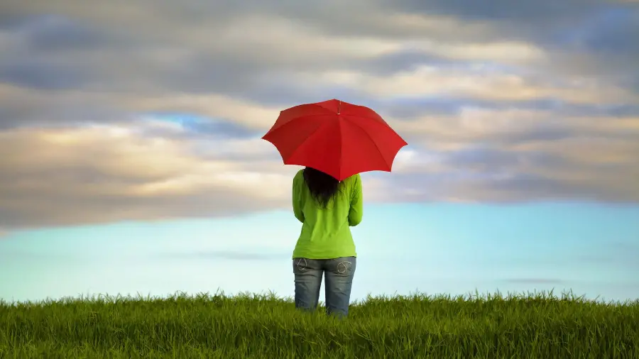 والپیپر جدید دختر تنها با چتر قرمز در سایز 3840 × 2160