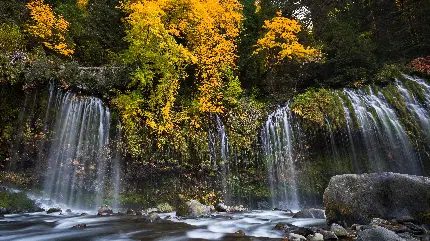 والپیپر آبشار های دلچسب در پاییز در یک قاب هنری زیبا با کیفیت 8K