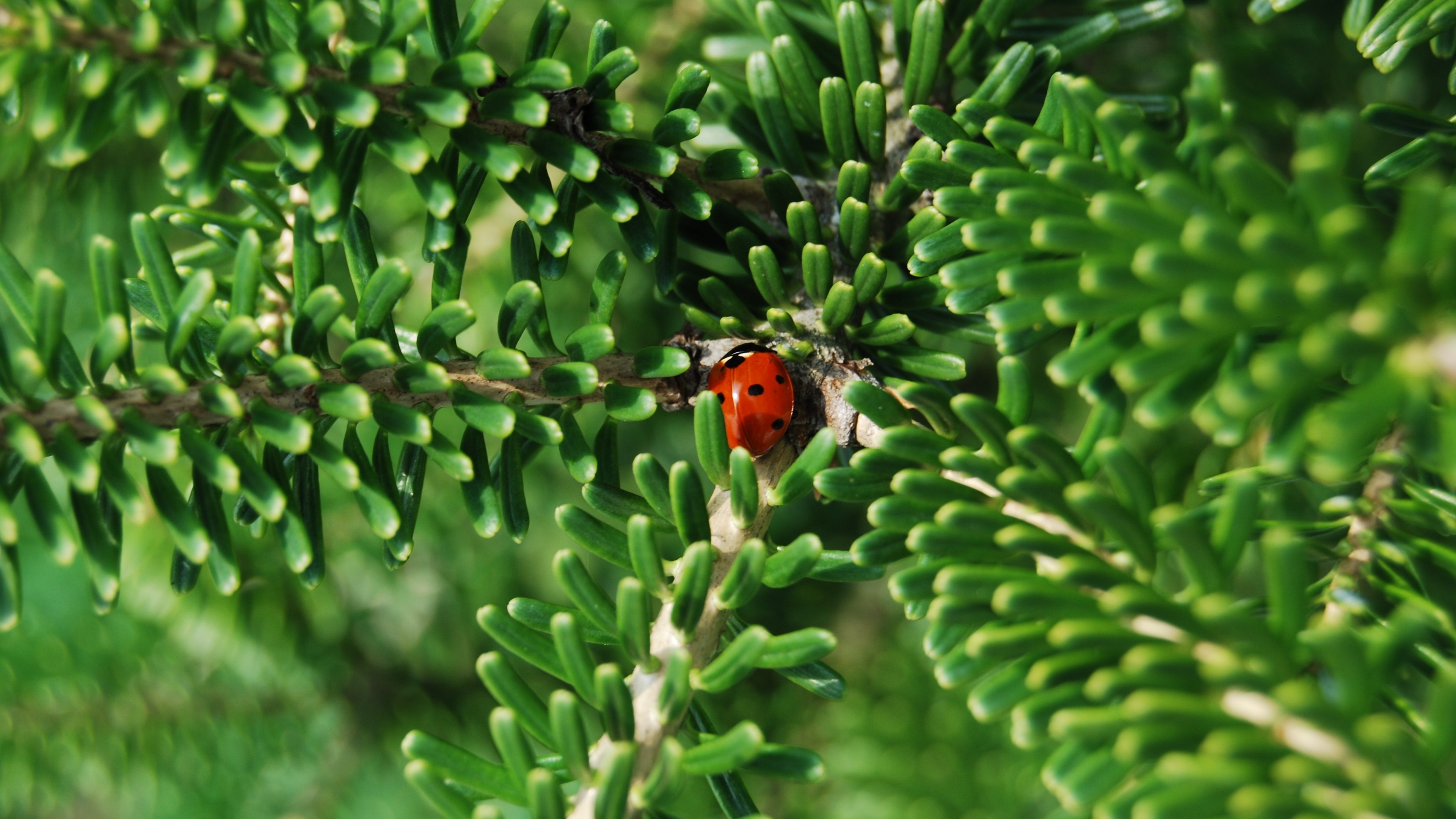 دانلود عکس پس زمینه کفشدوزک روی شاخه از گیاه سبز