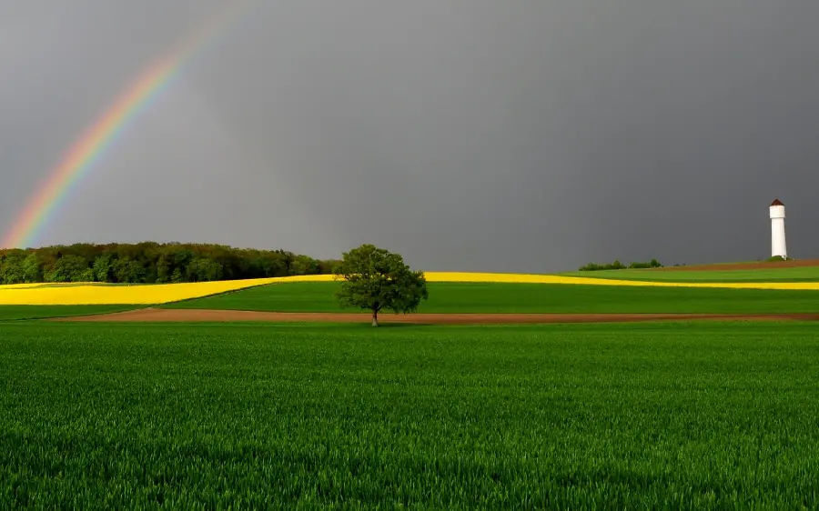 عکس استوک منظره زیبا و تماشایی و رنگین کمان رویایی