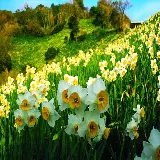 دانلود عکس پروفایل بکر خاص موبایل از دشت پهناور گل نرگس و درختان بزرگ پیرامونش