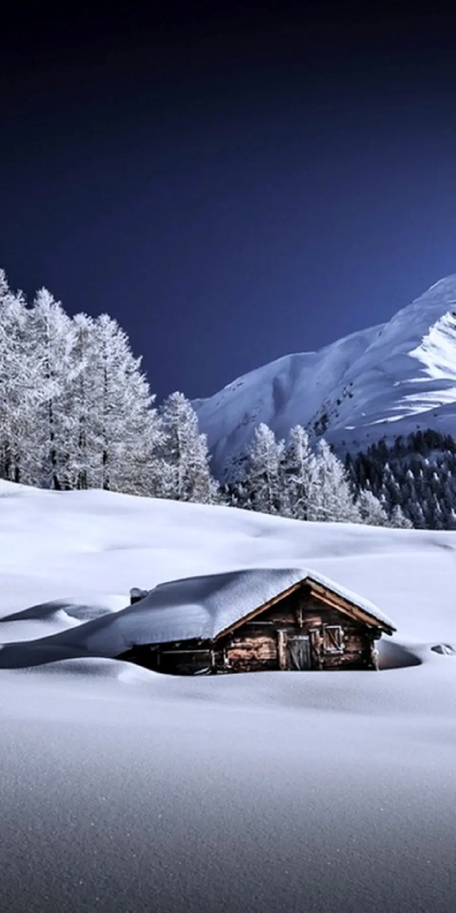 والپیپر و عکس کلبه ای در دامنه کوه برفی برای موبایل اندروید