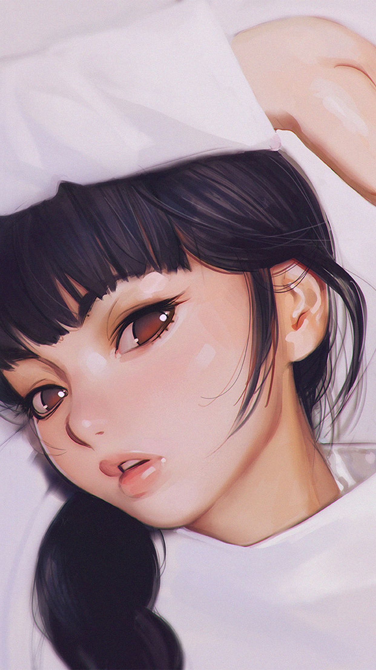 پس زمینه گوشی با طرح دختر کیوت مو مشکی با لباس سفید برای اندروید