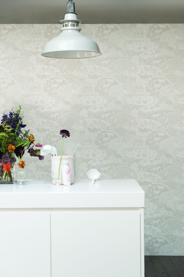 والپیپر منحصر به فرد از آشپز خانه با دکوراسیون طوسی و سفید