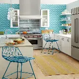 والپیپر زیبا از آشپزخانه منحصر به فرد با رنگ فیروزه ای مات