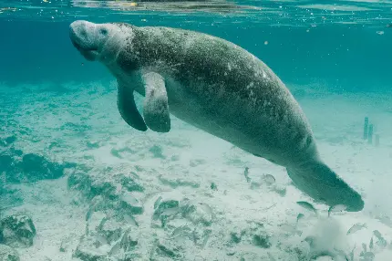 گاو دریایی یا همان گاو دریایی غربی، یکی از ۳ گونهٔ گاو دریاییها است که در آبهای گرمسیری شمال و جنوب آمریکا و دریای کارائیب زندگی میکند. این حیوان عظیم الجثه و بسیار دوست داشتنی، بیشتر در آبهای آرام و ساحلی با کف آهکی و مرجانی زندگی میکند و از گیاهان آبی و گیاهان ساحلی تغذیه میکند. گاو دریایی به دلیل شکار غیرقانونی و از بین رفتن محیط زیست خود، به عنوان یک گونهٔ در معرض خطر شناخته شده است و تحت حفاظت قرار دارد. در این قسمت از وب سایت جوهره شما می توانید عکس های جالب گاو دریایی در حال شنا در دریا با کیفیت بالا را مشاهده و دانلود بفرمایید.