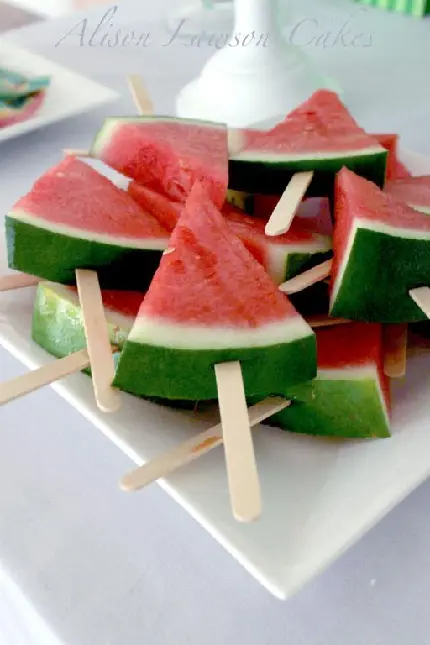 بهترین عکس استوک تزیین هندوانه قاچ شده و آبمیوه کنار استخر