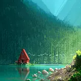بک گراند کلبه قرمز در کنار دریاچه با کیفیت 12K برای لپ تاپ