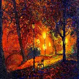 تابلو نقاشی رنگ روغن از منظره پارک نورانی در شب