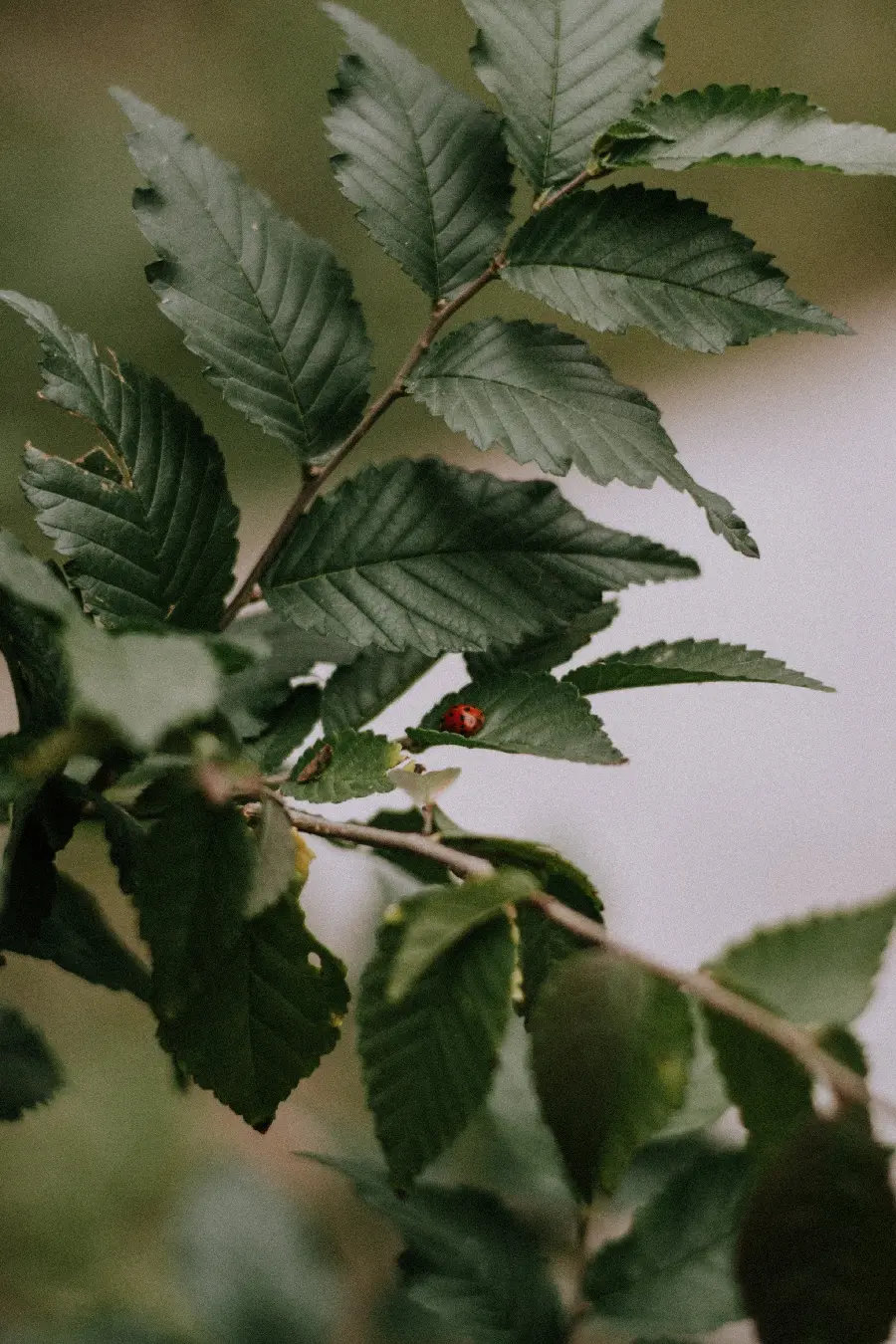 تصویر برگ شاخه و کفشدوزک با کیفیت بالا برای طراحی و چاپ
