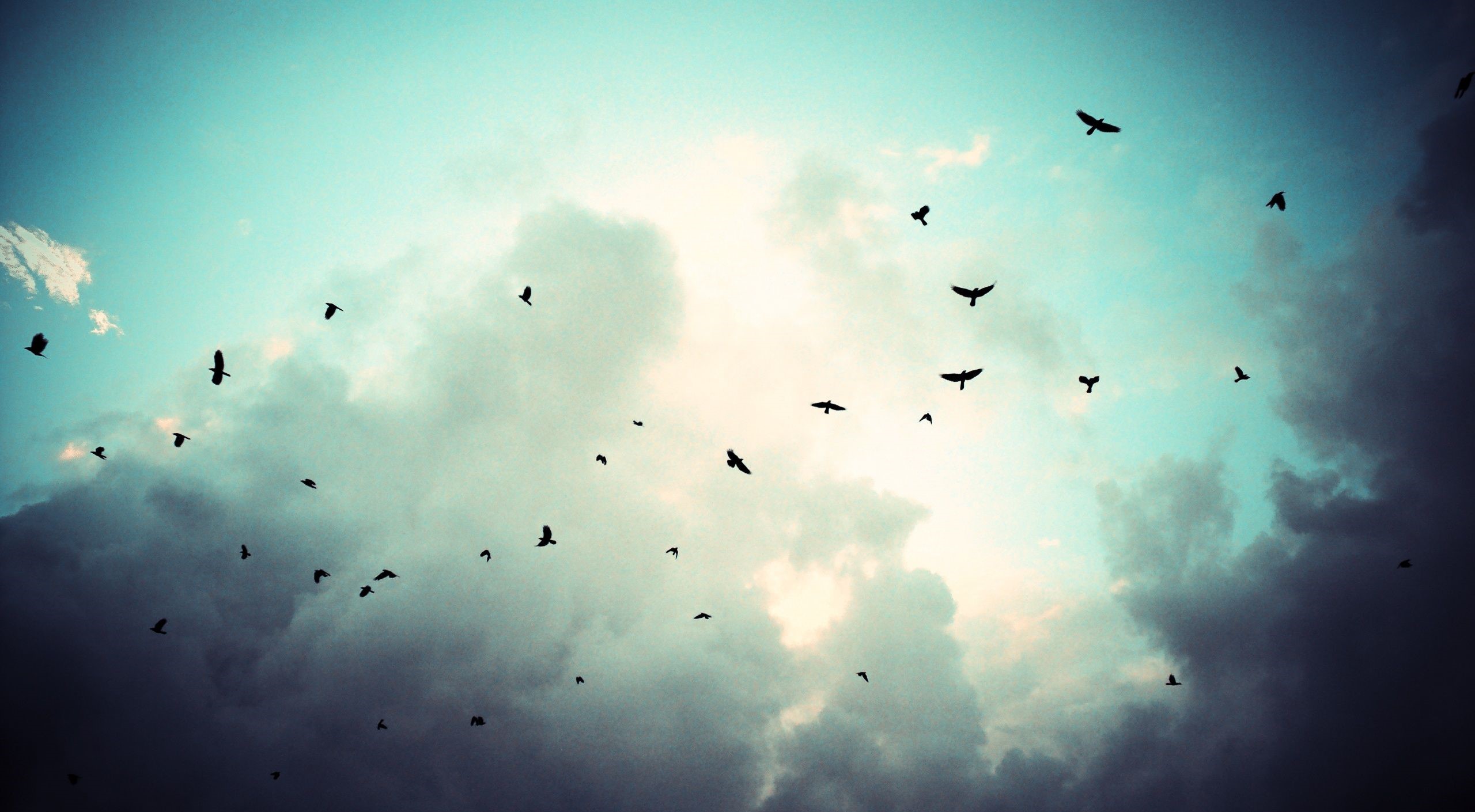 تصویر زمینه آسمان آبی و پرواز پرندگان مهاجر برای لپ تاپ