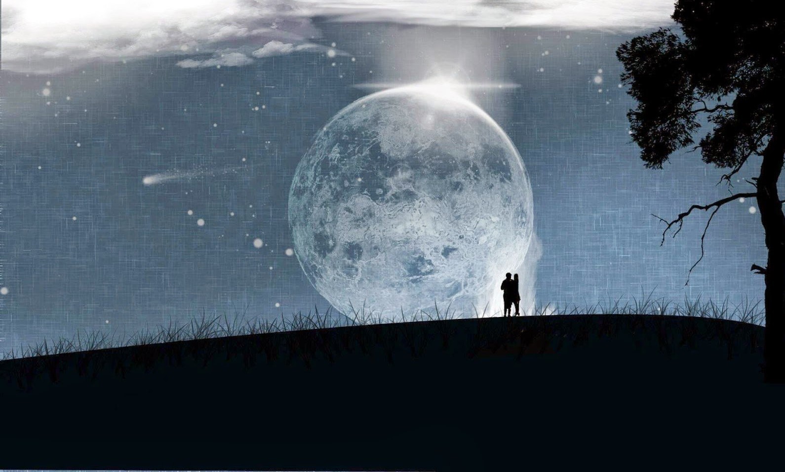 تصویر زمینه با شکوه شب مهتابی و زوج رمانتیک با کیفیت فور کی