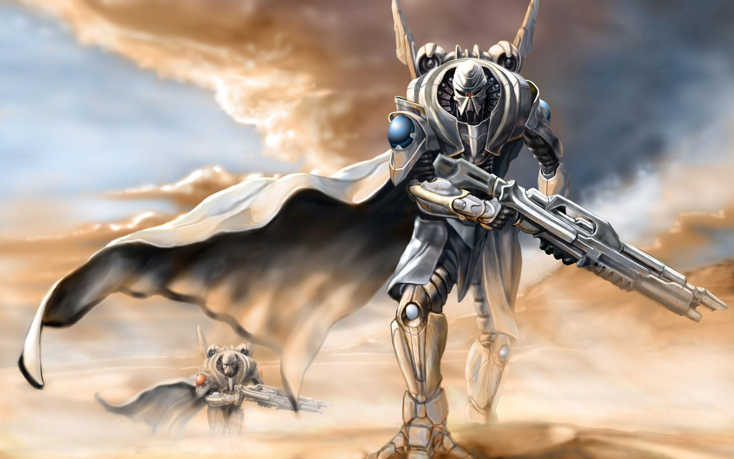 تصویر زمینه ربات های جنگجو در بیابان با کیفیت فوق العاده