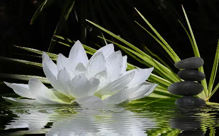 تصویر زمینه سنگ مشکی ذن و گل سفید باطروات ویژه لپتاپ