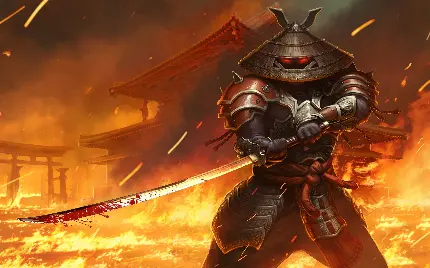 تصویر زمینه سیاه و سفید سامورایی ترسناک مخصوص کامپیوتر