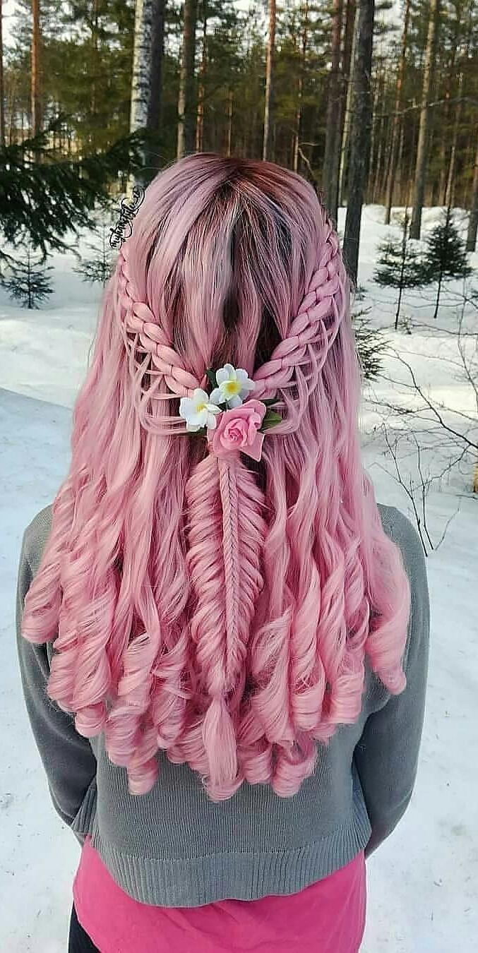 تصویر مدل بافت مو خوشگل با یک رنگ فانتزی دل چسب باکیفیت خوب
