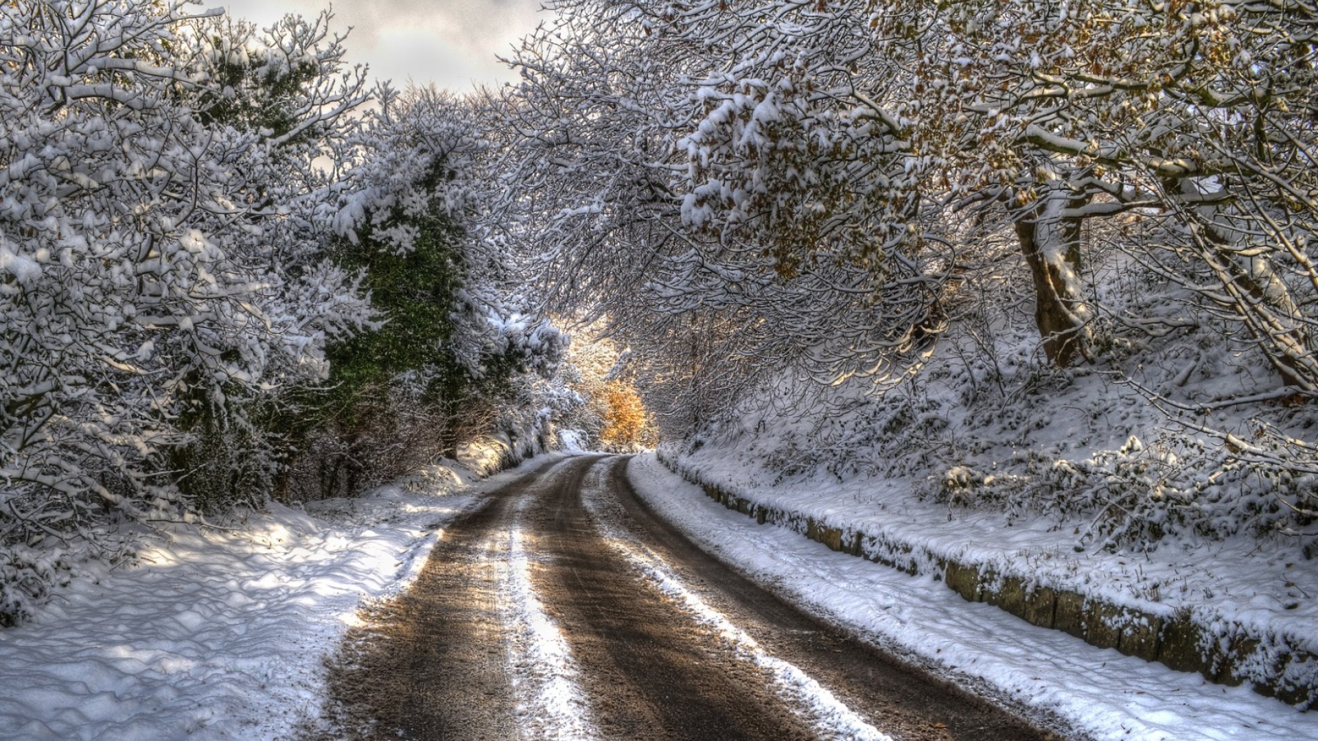 عکس جاده جنگلی در زمستان با برف و درختان پوشیده از برف