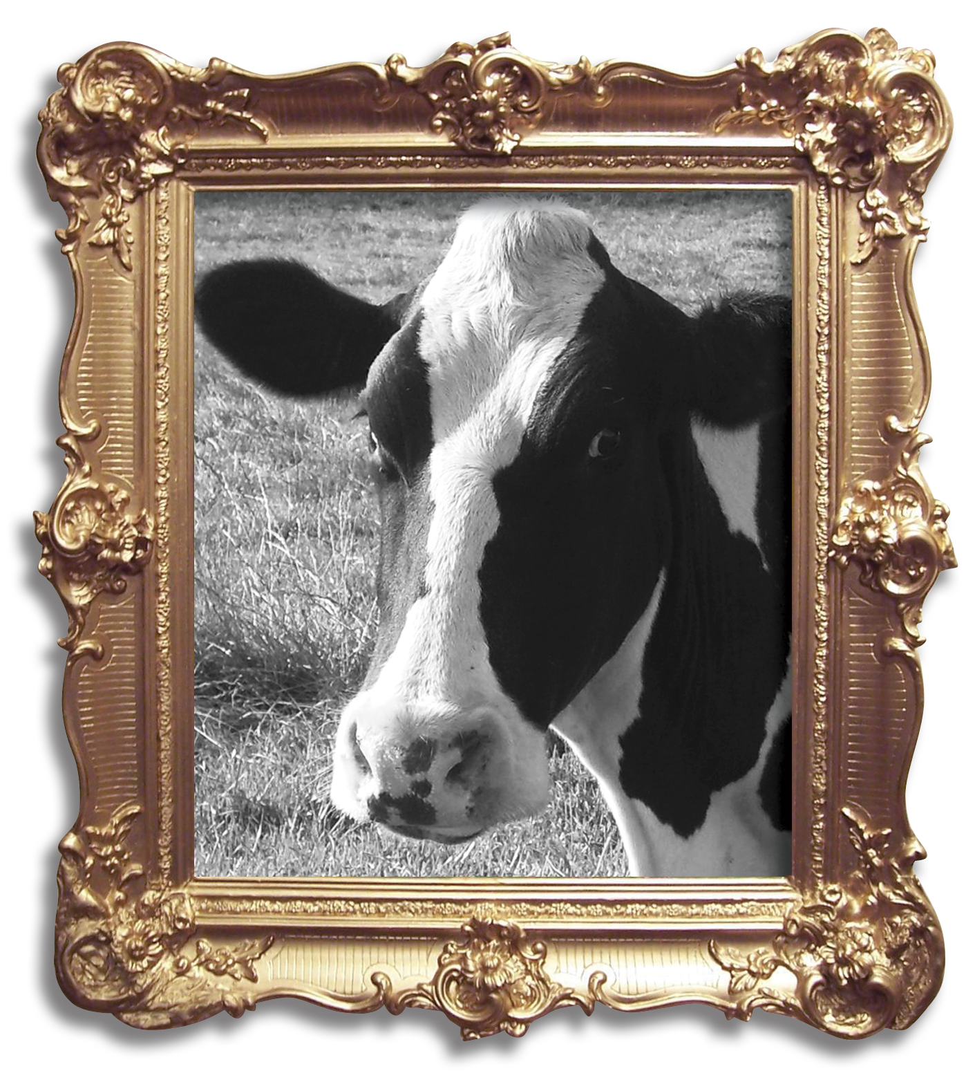 جدیدترین عکس سیاه و سفید png گاو واقعی با قاب سلطنتی طلایی