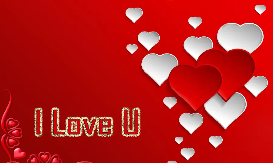 جمله عاشقانه i love you با رنگ قرمز و قلب های سفید و سرخ