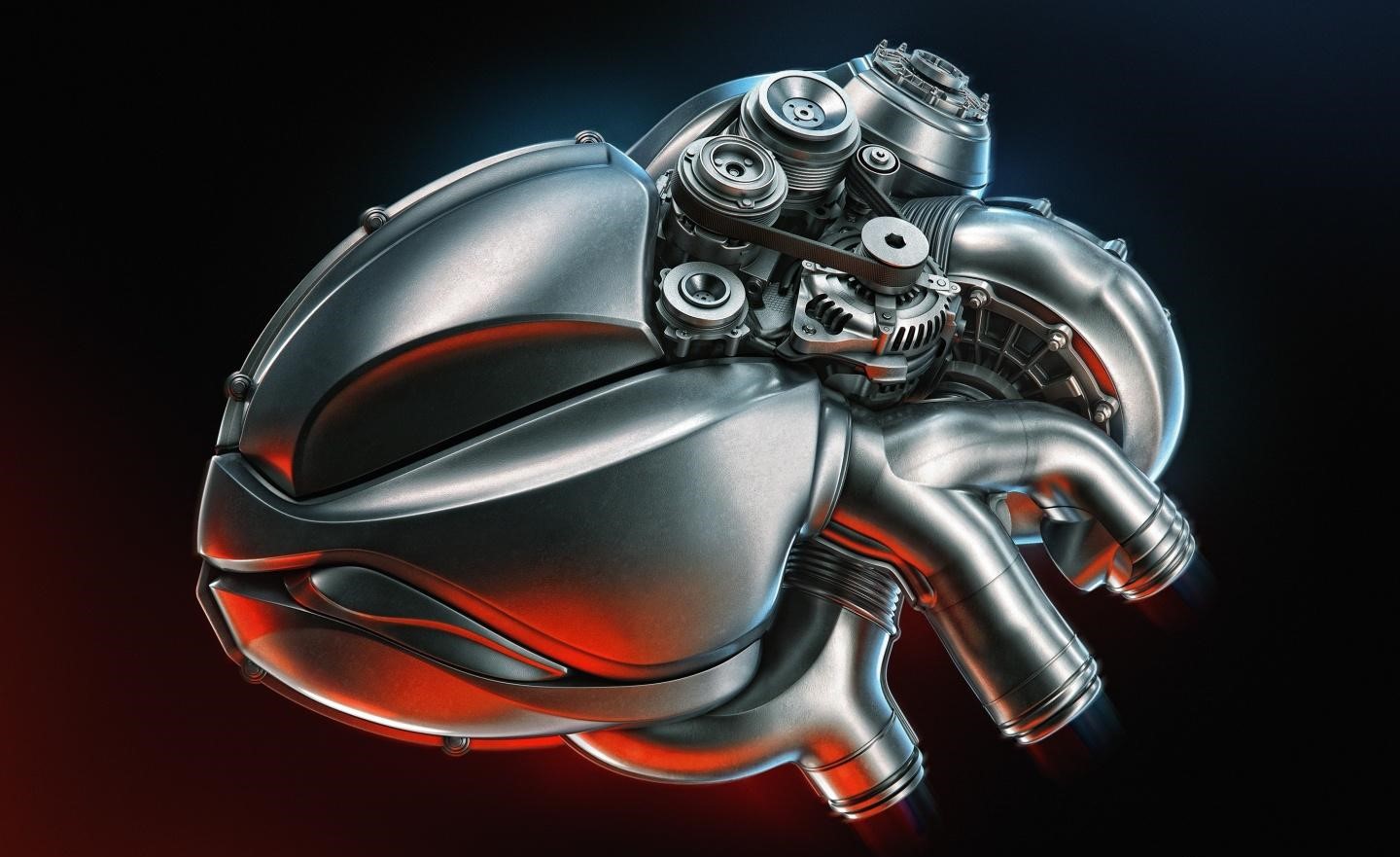 دانلود عکس استوک موتور دستگاه قلبی شکل فولادی با زمینه تیره