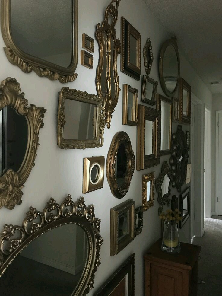 دانلود عکس تعداد زیادی آینه با قاب طلایی بر روی دیوار