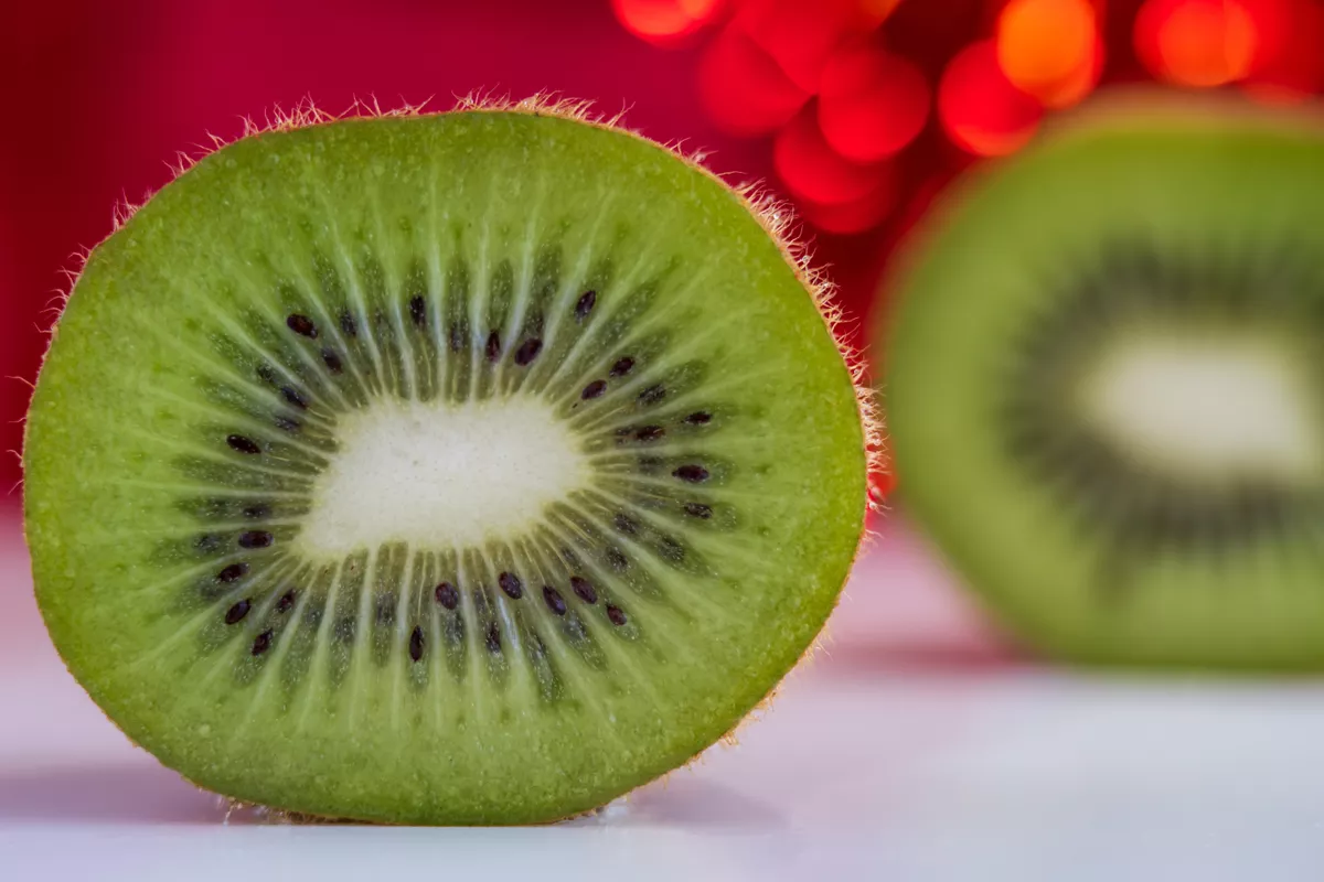 عکس حرفه ای کیوی با نورپردازی عالی و زمینه قرمز مات