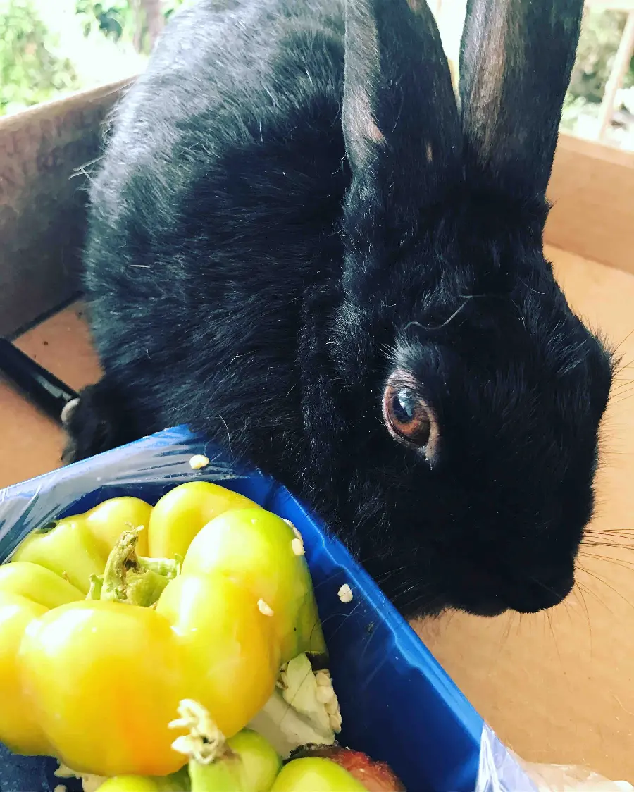 تصویر جالب از یک خرگوش کنار فلفل زرد با ترکیب بندی خلاقانه