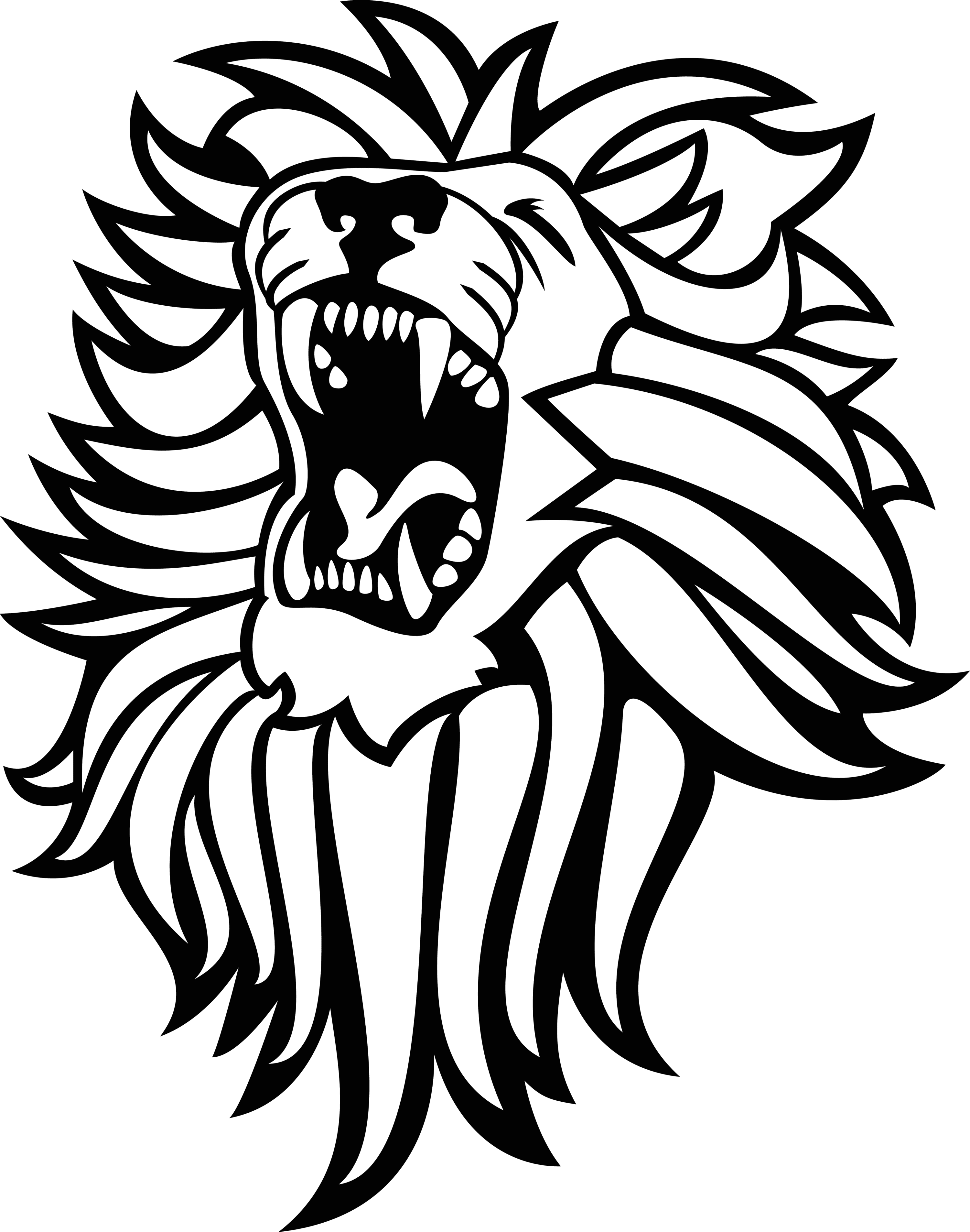 عکس طراحی سرشیر نر با یال های بلند و دندان های نیش بزرگ