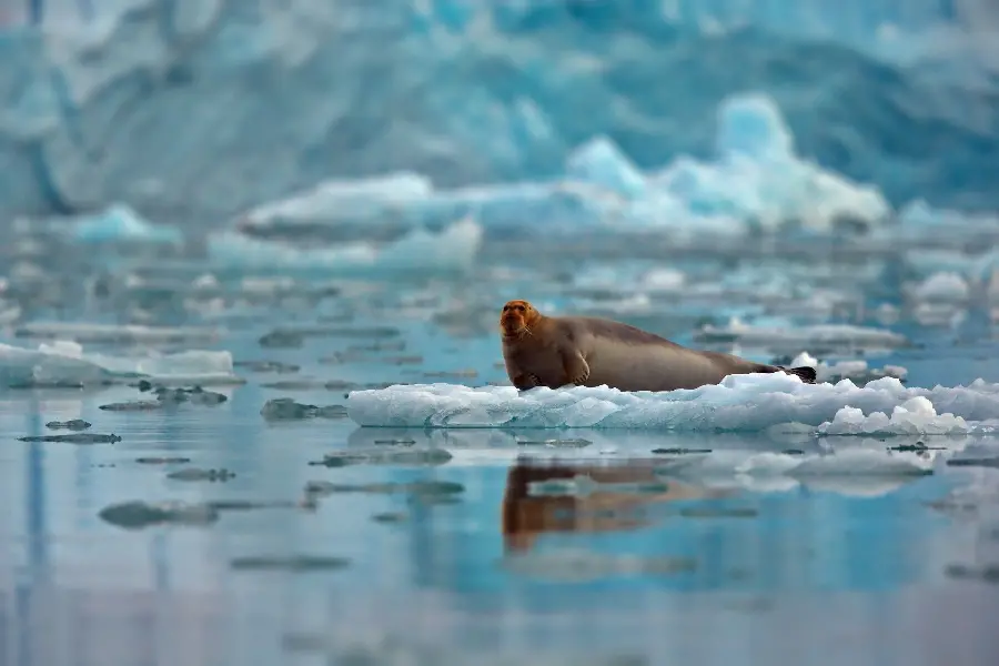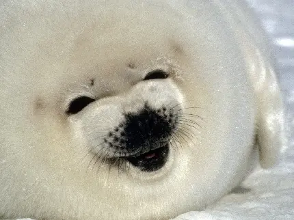 عکس فک قطبی دریایی تپل در طبیعت برفی قطب شمال بر روی تکه یخ