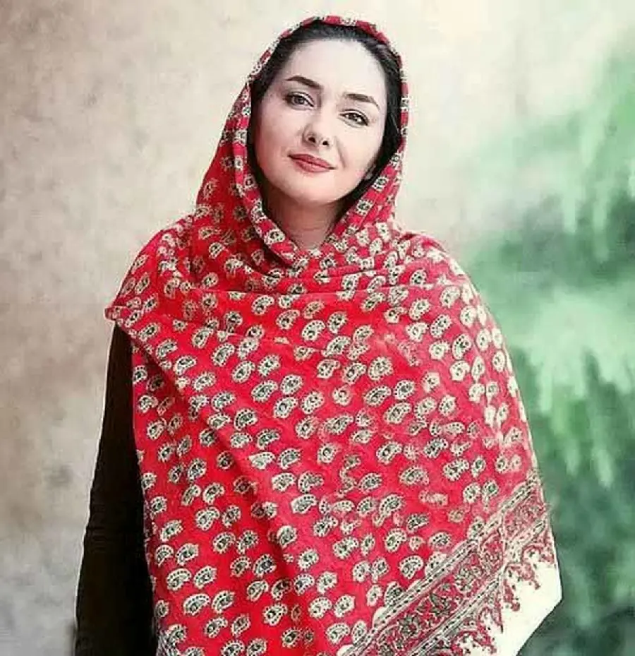عکس هانیه توسلی با روسری بلند قرمز برای تصویر زمینه