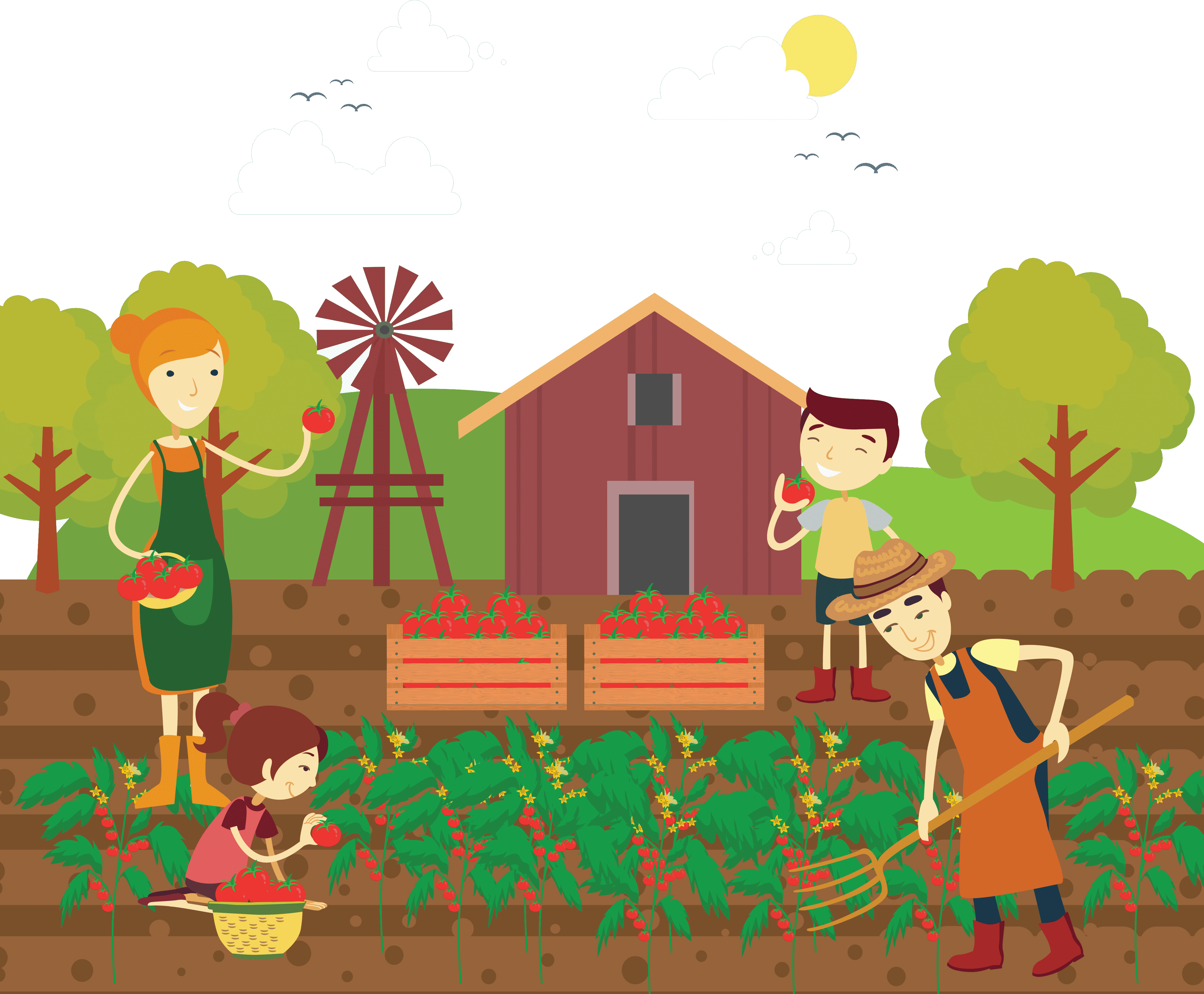 عکس کارتونی مزرعه گوجه فرنگی بزرگ در فصل بهار با کیفیت HD