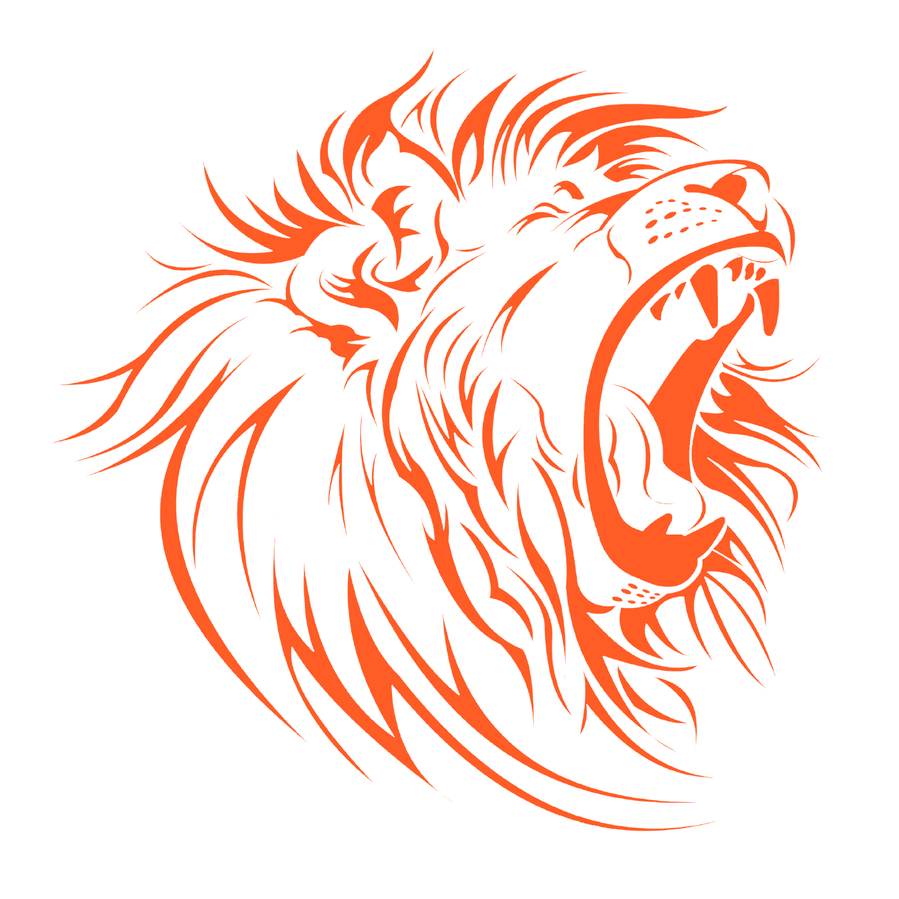 نقاشی غرش شیر با خطوط نارنجی رنگ و در فرمت png