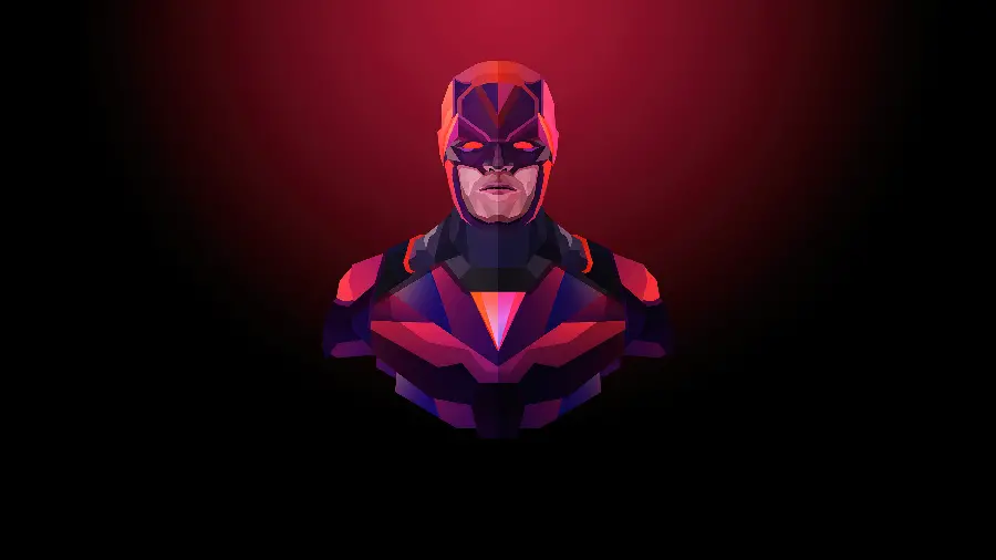 تصویر دارودیل با طراحی مینیمال و رنگ قرمز بر روی پس زمینه تاریک. این والپیپر با کیفیت 3840x2160 و طرح هنری منحصر به فرد مناسب برای علاقه مندان به مارول و سوپر هیروها می باشد.