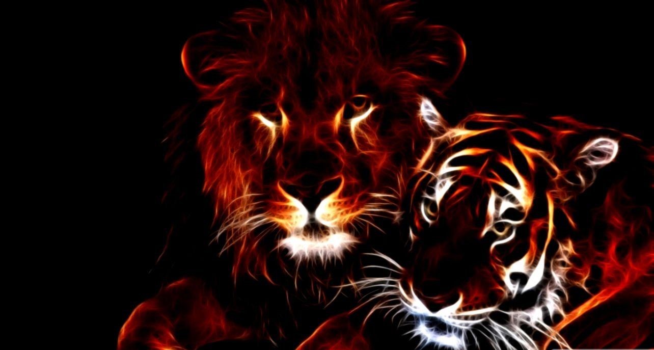 والپیپر و عکس پس زمینه ببر و شیر نر نئونی