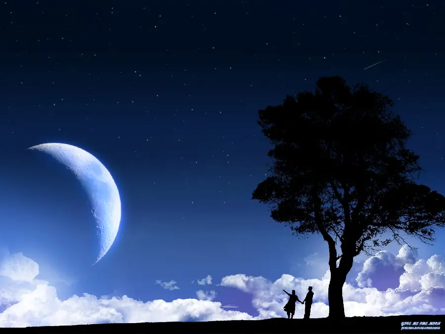 پروفایل تک درخت زیبا زیر آسمان با هلال ماه