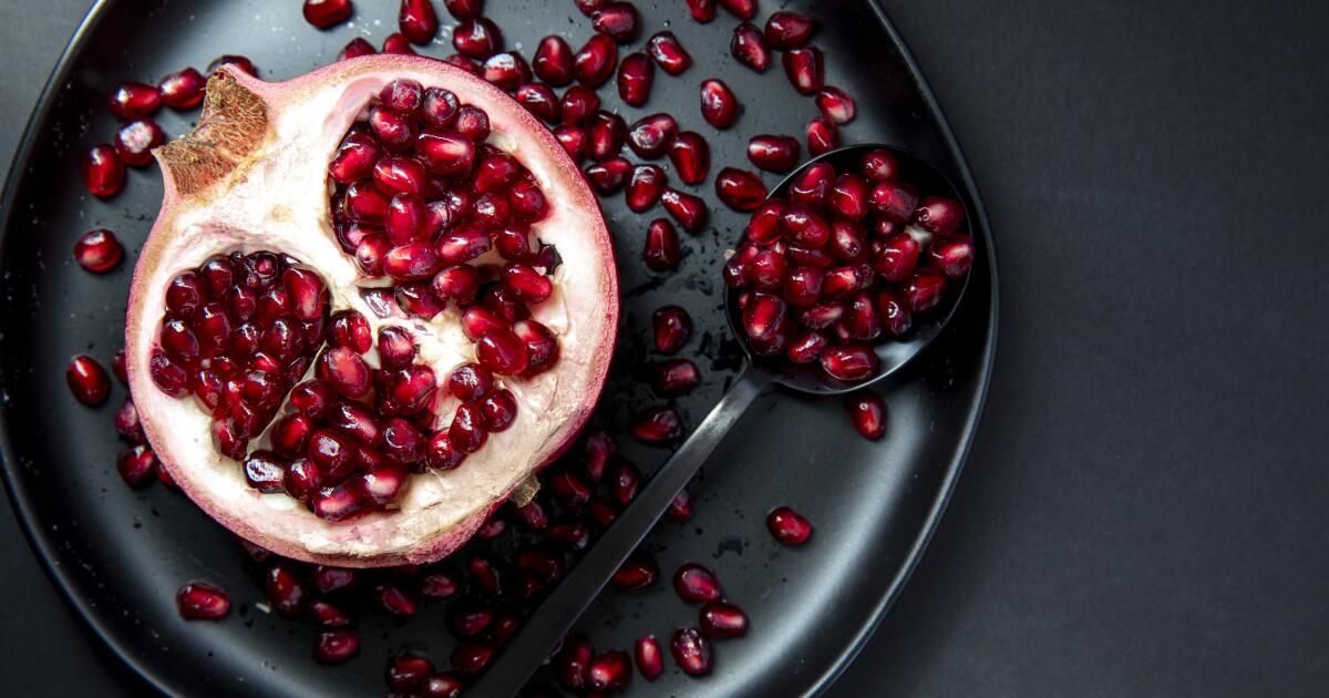 پس زمینه دانه های قرمز رنگ میوه انار با کیفیت فوق العاده