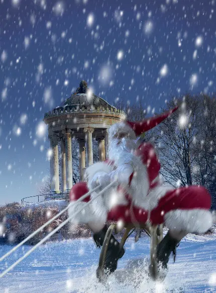 تصویر نقاشی ساده و زیبا از پرواز بابانوئل با کیفیت HD و رزولوشن بالا. این عکس مناسب برای استفاده در طراحی کارتهای تبریک، پست های اینستاگرام و تولید محتوای بصری میباشد. کیفیت عالی این تصویر آن را برای چاپ و پرینت نیز مناسب ساخته است.